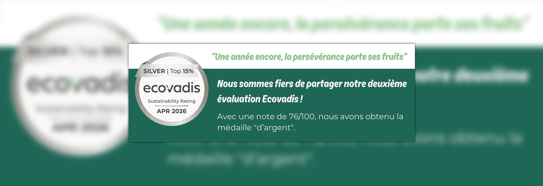 Nous sommes fiers d’annoncer l’obtention de la médaille d’argent EcoVadis 2026, avec un score de 76/100. Cette distinction récompense la solidité de notre démarche en matière de Responsabilité Sociétale des Entreprises (RSE) et témoigne de notre engagement en faveur d’un développement durable et responsable.